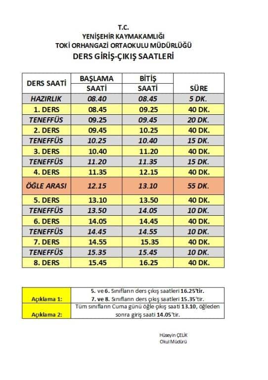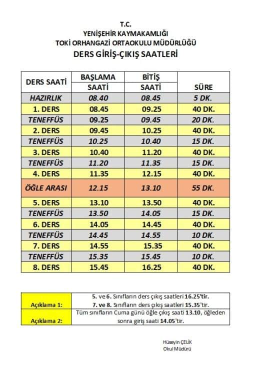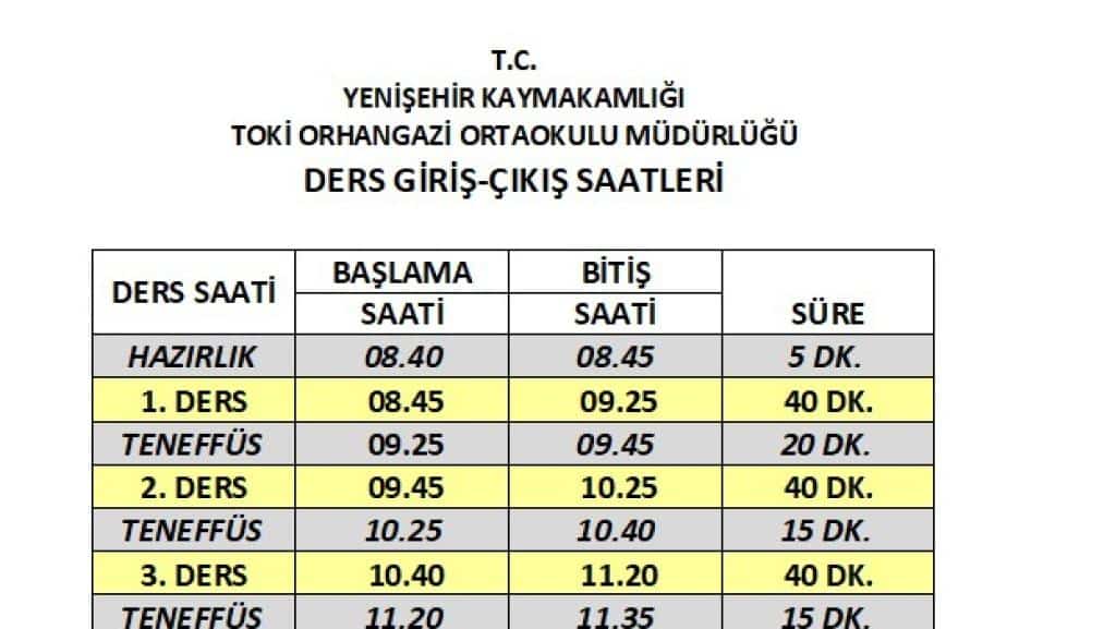 8 Eylül 2025 tarihinden itibaren geçerli ders programına...